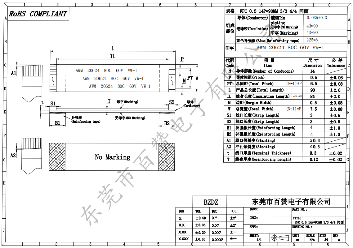 FFC軟排線0.5間距同向